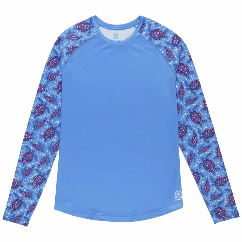 As graceful as a sea turtle, 5Fin releases the American Turtle Long Sleeve Shirt. Enjoy a solid colored body, with a patriotic turtle pattern along the sleeves. With stars and flippers showing proud, you’ll love the feel of this 88/22 Poly spandex blended shirt. Imported.