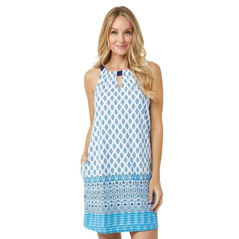 The combination of this preppy print and trendy silhouette makes this Coral Geo Sleeveless Shift an instant favorite. We love to wear this dress to work and errands, but nothing is better than cocktails with the girls. Get ready for endless compliments in this UPF 50+ dress. Imported.