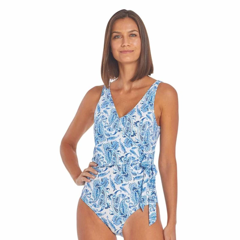 Ready for swimming in the sea or lounging by the pool, this gorgeous printed one piece features a wrap tie for an ultra flattering fit. Built-in cups & UPF 50+ fabrics for ultimate support & coverage. Imported.