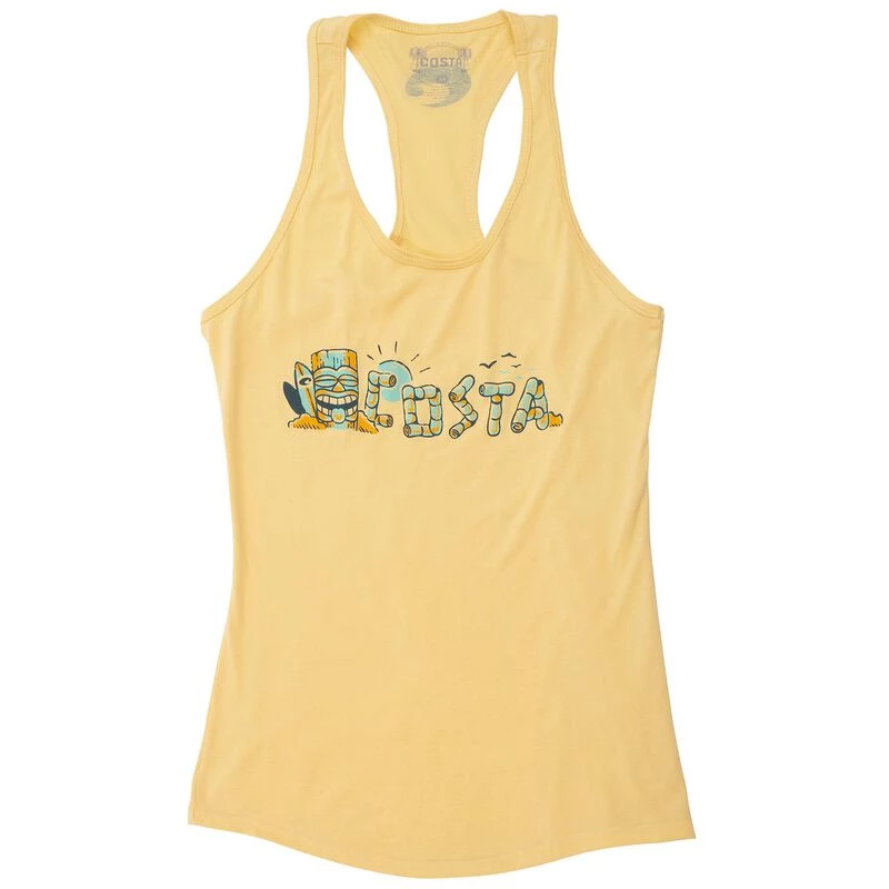 This women’s sleeveless top features a cool Costa tribal graphic. It’s cotton/poly combination of materials makes it out of the package comfortable to wear. Easy care instructions. Imported.
