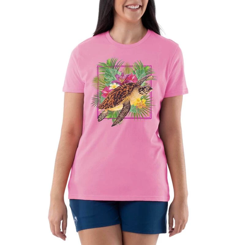Guy Harvey draws from his experience as a diver, angler and marine biologist to bring this Sea Turtle to life on the front of this ladies short sleeve tee. Made of 100% cotton, it’s soft and comfy and the perfect tee for wearing on the boat, the beach or shopping with friends. For added comfort it has a scratch-less tag-free label. Machine washable. Help Save our Oceans! Your purchase supports the health of our oceans and marine life. A portion of the proceeds from the sale of all official Guy Harvey merchandise benefits the Guy Harvey Ocean Foundation, which conducts scientific research and hosts educational programs to help save our seas. Imported.