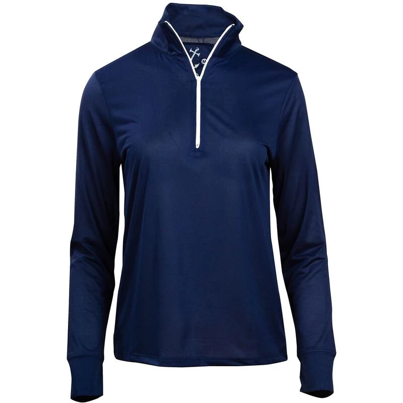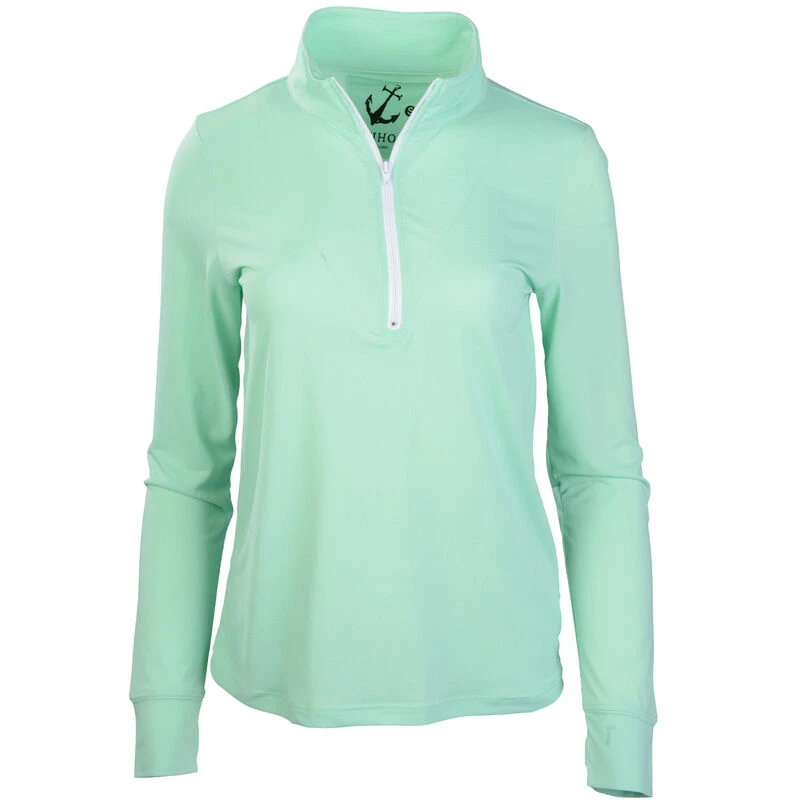 A women’s 1/4 zip front top with mock neck collar, this UPF50 top offers maximum sun protection with thumb holes in the cuffs. Lightweight and comfortable, this top is ideal for many outdoor activities including golf, tennis and walking, but its quick drying feature particularly lends itself to anything on or near the water. Machine washable. Imported.