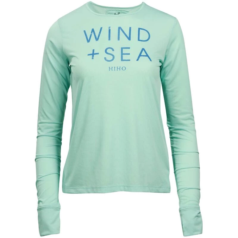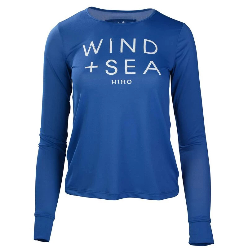 A women’s UPF50 crew neck top offering maximum sun protection with thumb holes in the cuffs. Lightweight and comfortable with the Wind & Sea graphic printed on the front, this top is ideal for many outdoor activities including golf, tennis and walking, but its quick drying feature particularly lends itself to anything on or near the water. Machine washable. Imported.