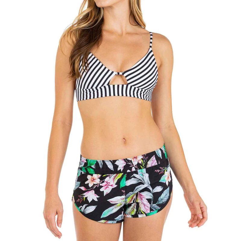 The Flora 2.5’’ inch Beachrider boardshort is an active inspired hybrid boardshort that was designed to be worn in and out of water. The quick dry, 2-way stretch material creates a water wicking effect when worn. This short is part of our franchise family and is perfect to wear for a run, hike or just to relax in. The One and Only short features a back single welt Velcro pocket. A wide elastic waistband with a volley subtle volley inspired hem. She is ultra-soft, lightweight, provides a comfortable fit and natural mobility in and out of water. Imported.