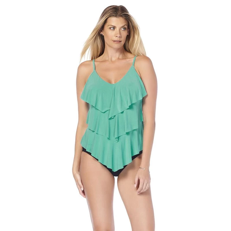 The Magicsuit Rita Tankini Top is super stylish and flattering. It features a unique control back lining that smooths and slims the figure. It also provides plenty of lift and support with a built-in elastic bra, comfortable soft cup padding and adjustable straps. Pair with any Magicsuit brief, skirt or shorts to complete your look. Imported.