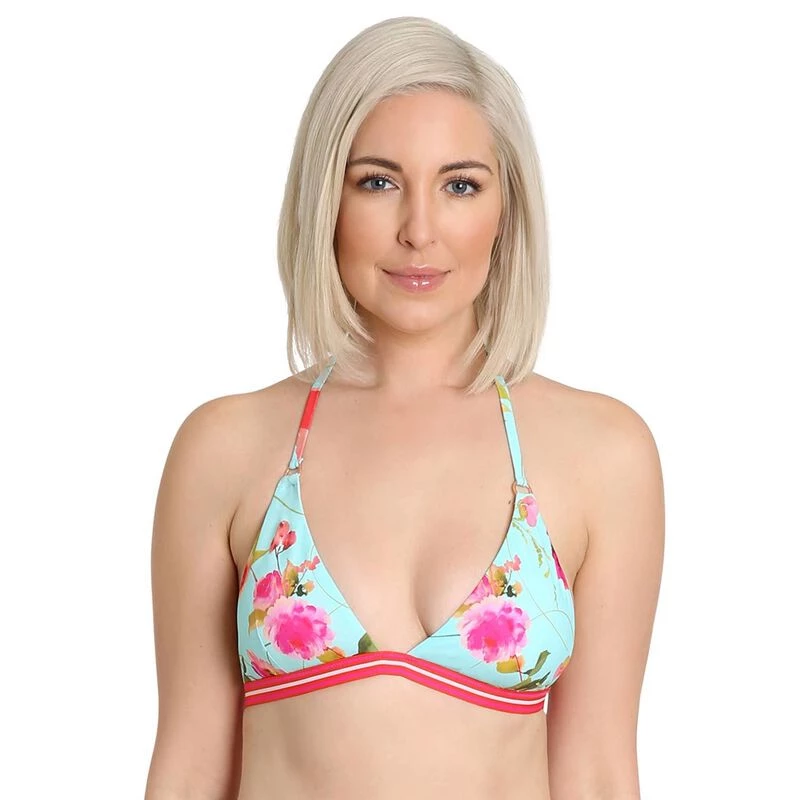 The Francesca fixed triangle top is a twist on the classic bikini silhouette. It’s easily adjustable with halter ties, and accented with rose gold rings, beads, and tassel cord ends. Featuring a soft and stretchy jacquard elastic band with adjustable rose gold back hook. Removable cups. Rated UPF 50+. Pair with our matching bottoms. Imported.