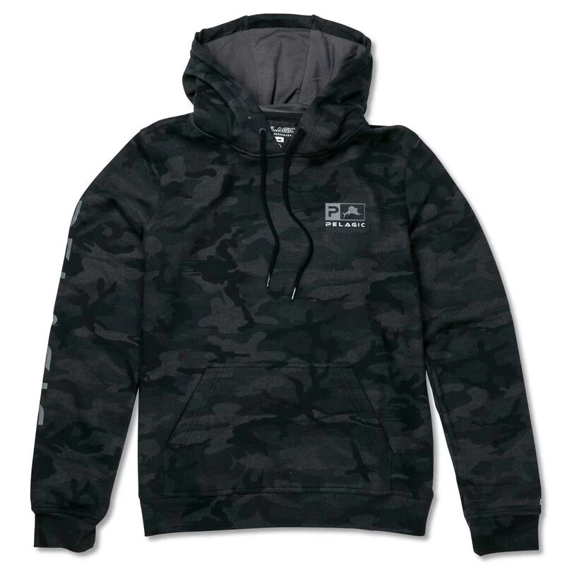 New Women’s Fish Camo Black Icon hoodie. The Pelagic Icon Hoodie offers an updated Pelagic logo design with a sailfish. Perfect for those crisp days. Imported.