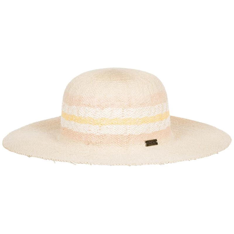 Relax under the summer sun with this Panama hat crafted from durable woven straw fabric. The rounded crown features a soft pastel-colored stripe pattern. Complete with a wide flat brim and a metal ROXY branding plaque. Imported.