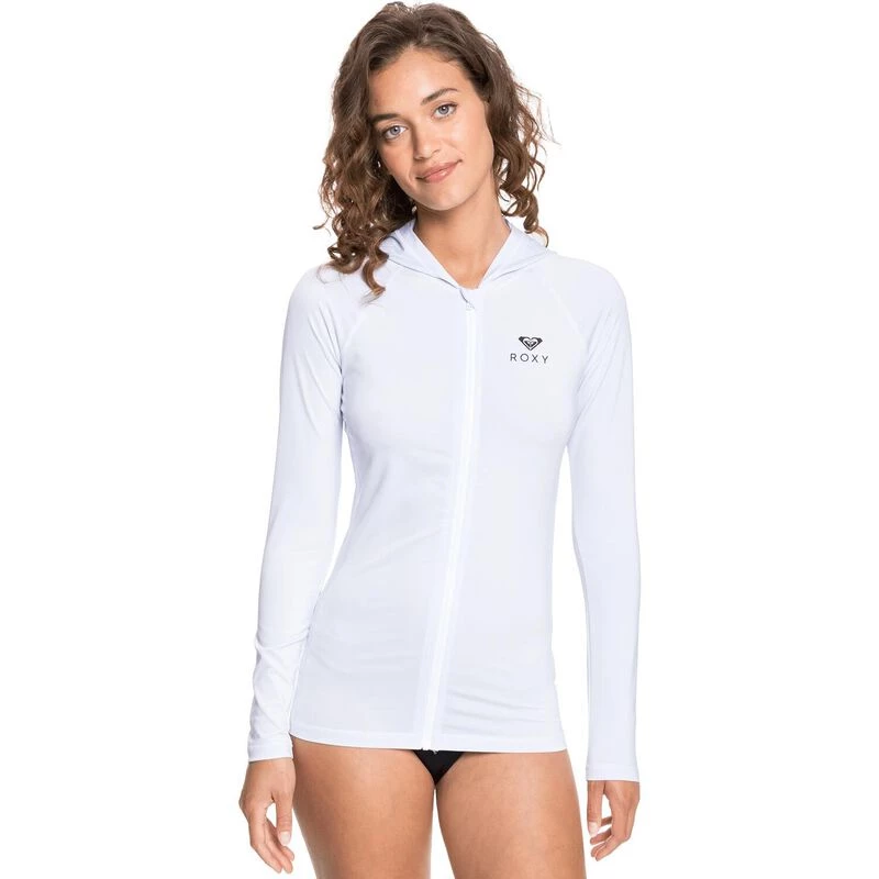 Roxy Long Sleeve Full Zip Hooded Rashguard with UPF 50 sun protection. The trendy design transitions from the waterfront to the waves with ease. Imported.