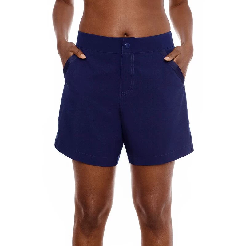 This boardshort is made to be worn as a cover up. It’s convertible from a 5″ inseam to a 7″ inseam with an adjustable rolled hem and side snap tabs. Drawstring waist with snap front closure allows for a personalized fit. Sail Away garments are created with Recycled nylon, mindful manufacturing and sustainable practices. Imported.