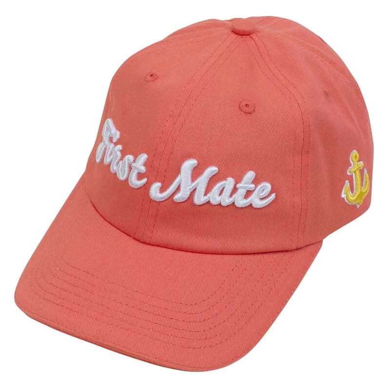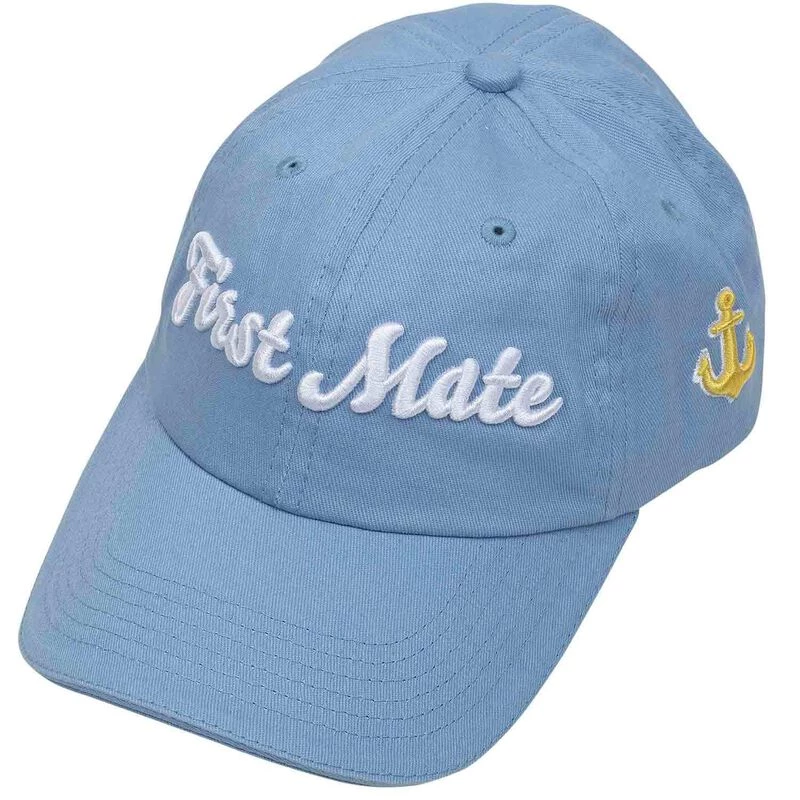 This comfortable, cotton ballcap is adjustable and perfect for the second in command with “First Mate” embroidered on the front.